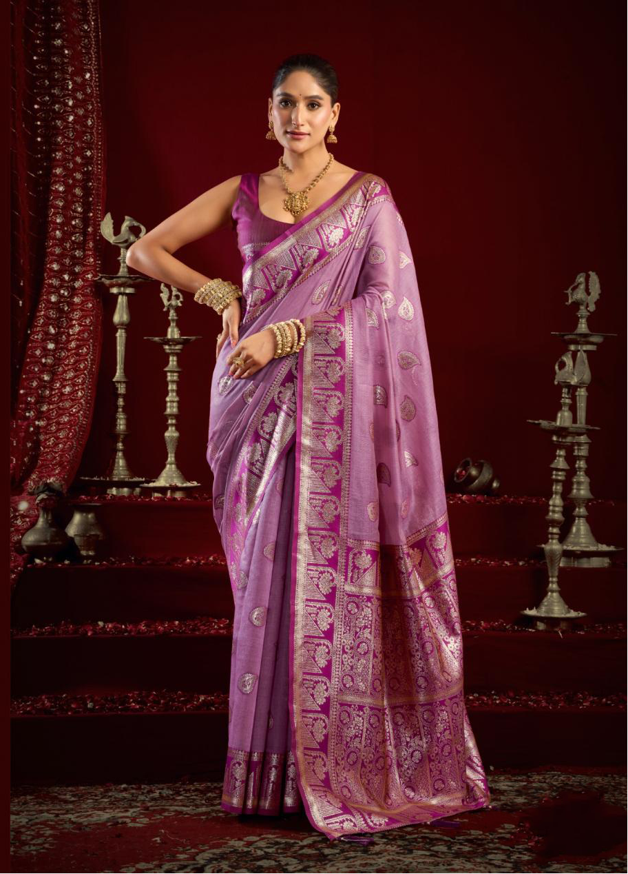 Vistavelle Lavender Purple Fancy Modal Banarasi Jari Saree with Zhallar
