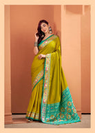 Vistavelle Olive Green & Teal Patola Silk Traditional Saree