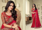 Regal Red Shimmer Silk Saree with Heavy Zari Embroidered Blouse | Wedding Reception Wear USA