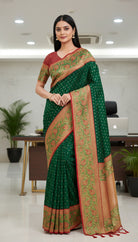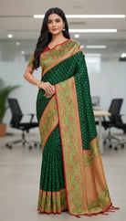 Green and Red Designer Silk Fabric Saree with Fall & Pico Fully Stitched Blouse